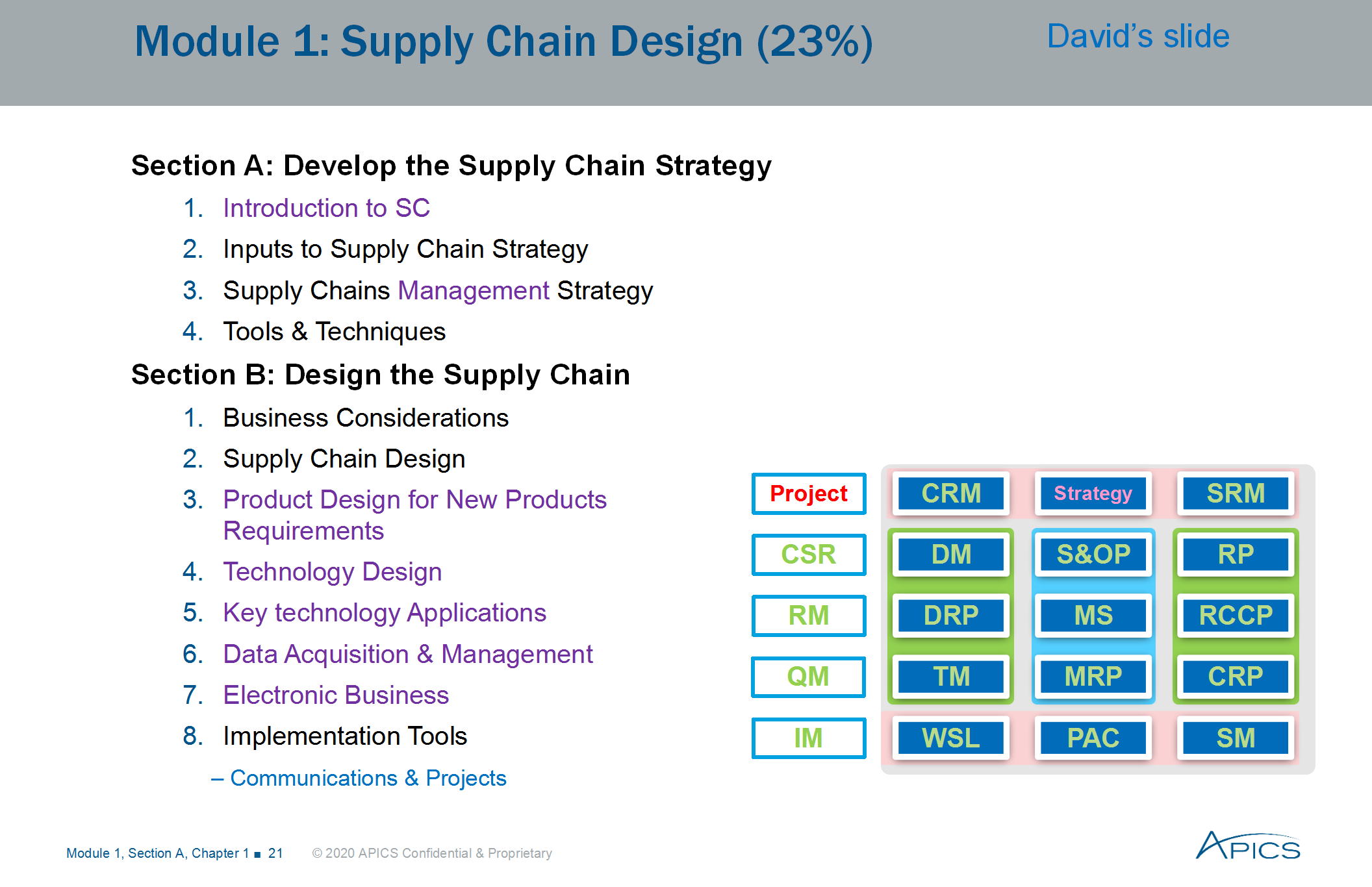 自2006年推出以来,APICS旗下的CSCP—供应链管理专业人士专业资格认证已经成为供应链管理领域教育和认证的全球化标准。CSCP认证拓展了APICS在运营领域的知识体系,跨越了企业内部的运营管理,涵盖了整个供应链上的端到端的所有层面:从供应商到制造企业,一直到最终客户。