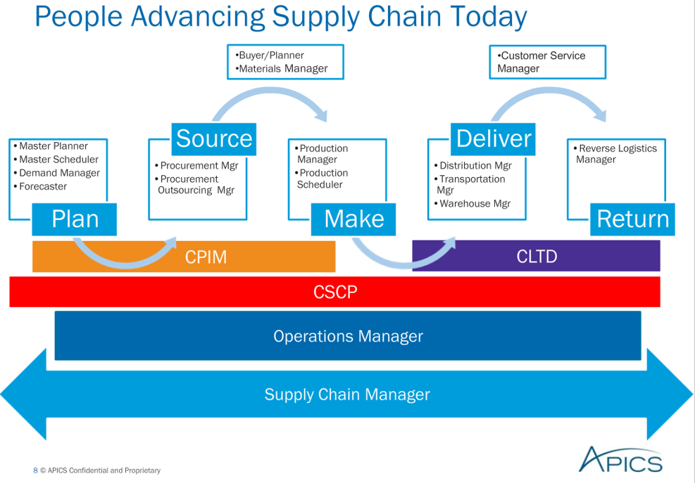 自2006年推出以来,APICS旗下的CSCP—供应链管理专业人士专业资格认证已经成为供应链管理领域教育和认证的全球化标准。CSCP认证拓展了APICS在运营领域的知识体系,跨越了企业内部的运营管理,涵盖了整个供应链上的端到端的所有层面:从供应商到制造企业,一直到最终客户。