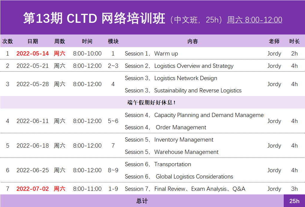 ■ 课程全面涵盖认证考试内容,有助于考取“CLTD 物流经理”资格认证